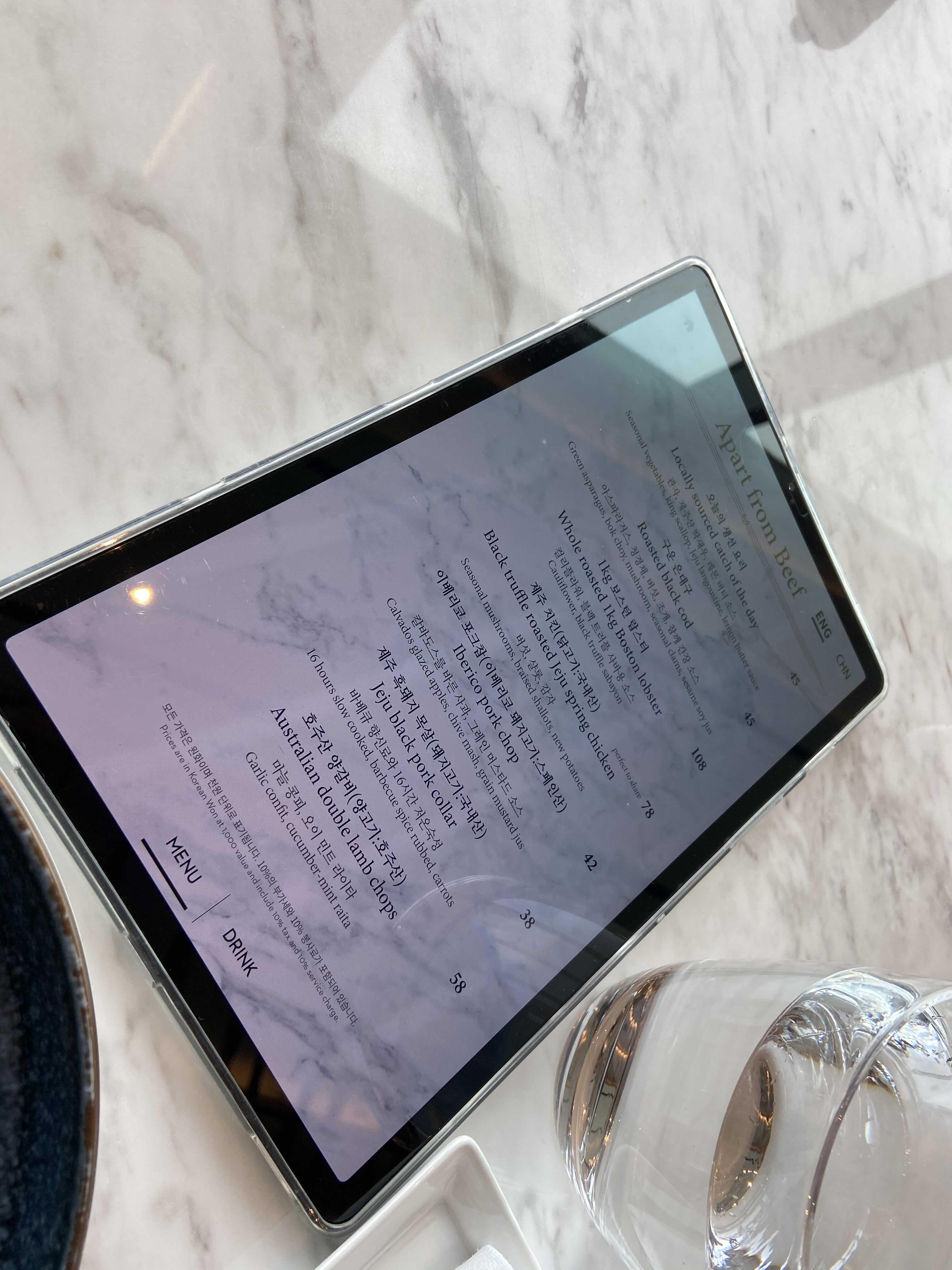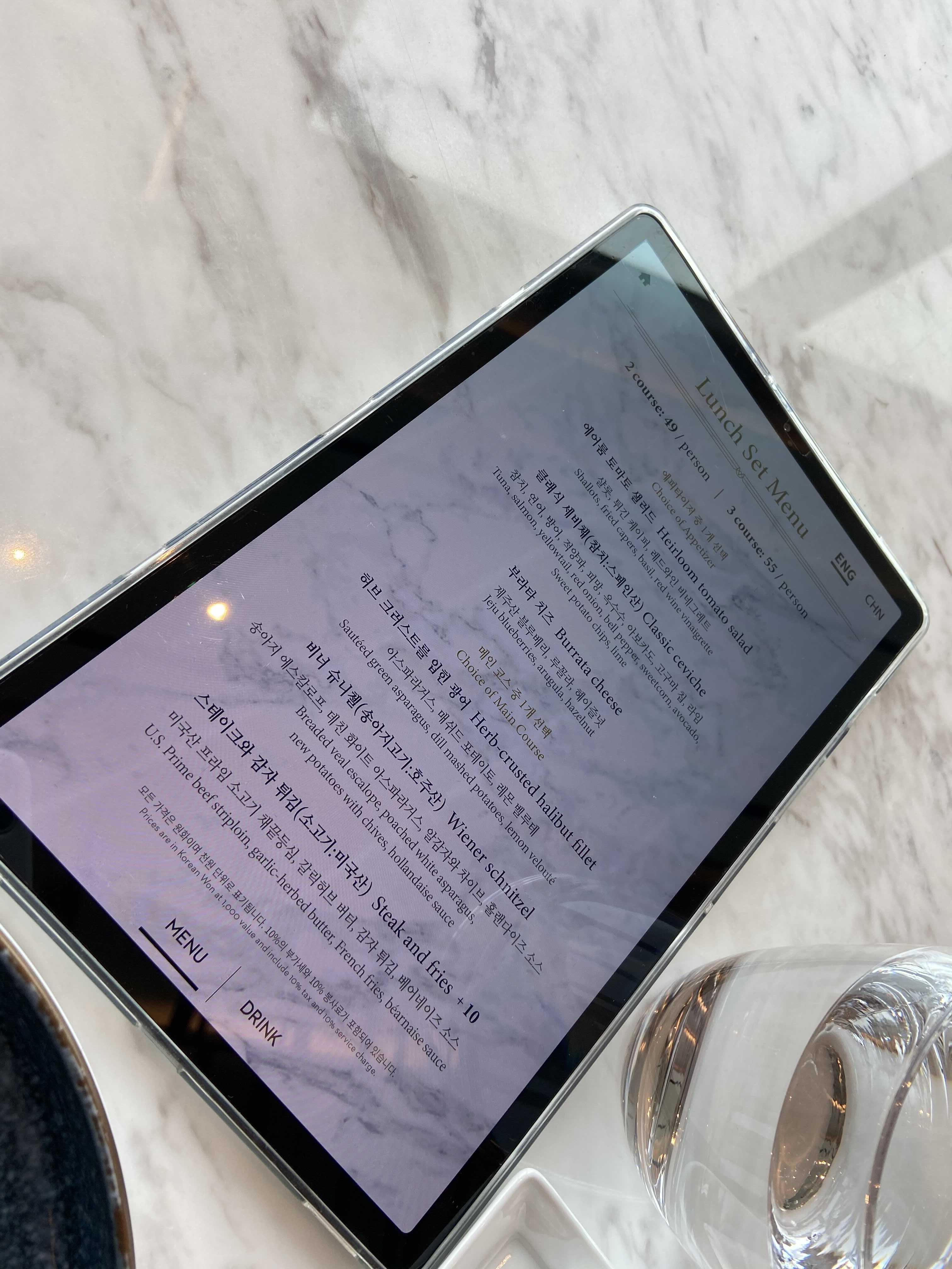 메뉴는 테블릿으로 넘기면서 볼수 있다